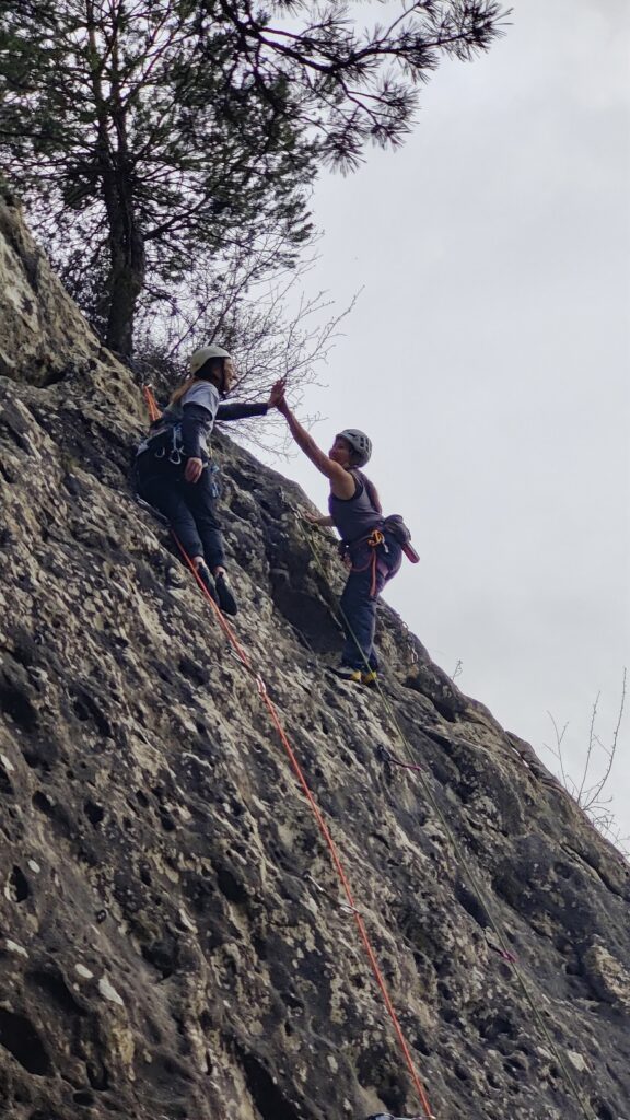Au cours de l’après-midi, Damien et Gabriele mettent une corde sur Papyrus (6b+) pour tenter plusieurs runs sur cette belle voie, avec une petite revanche pour certains sur cette voie lors du précédent WED.